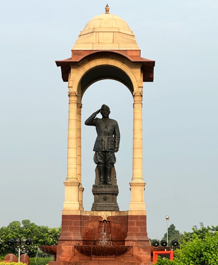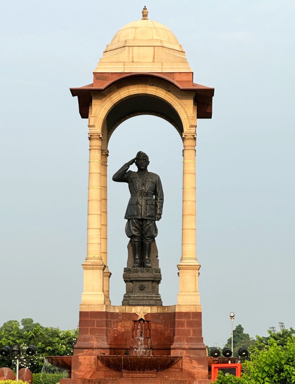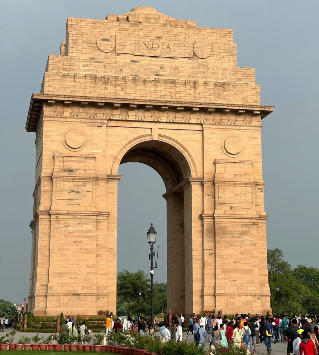 After our visit to the silent hall, the group heads to the India Gate and War Memorial, along the way the bus does a couple of laps of a roundabout that is in front of the government building. We have to do the laps as the bus isn’t allowed to stop and park up for security reasons but there’s no rules about accidentally missing your turn on a roundabout a couple of times! From the bus we are able to see not only the current Indian Government buildings but also the new building they are getting ready to open. After our not so accidental missed turns we park up and walk towards the gate. It is an amazing monument dedicated to soldiers who fought and lost there lives in WW1. There are loads of names transcribed on the monument and, Anuj tells us, the names of many British soldiers. Unfortunately this is a very busy area and some of the woman we are with are getting some unwanted attention from some of the men around. One such man came up to our group shoving cameras in their faces telling them how beautiful they are, apparently he is a vlogger, he eventually goes away and the group heads to the National War Memorial. This is a beautiful garden with more names transcribed of fallen soldiers from other wars. There is one monument that has a guard at watch standing perfectly still, similar to the royal guards in England.