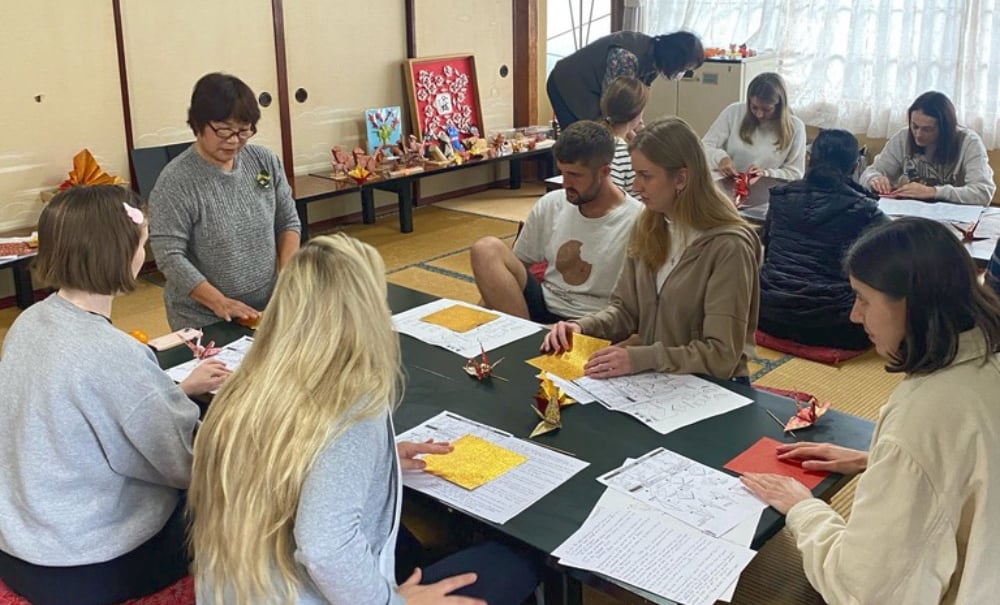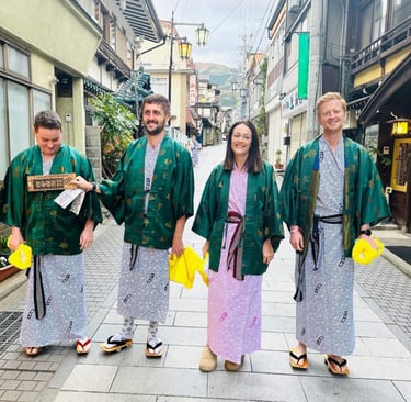 After folding our little hearts out Stephen, Luke and I decide to head to an onsen together. Now you may be wandering why only the guys were going together, well you see these are all nude public baths/hot springs. The onsen is a deeply historic and spiritual thing here and clothes inside the onsen are considered dirty and are strictly prohibited so the onsens are separated by gender. Although many of the women on the trip are indulging in these hot spring baths, unfortunately for me, probably not for them, I can’t go with them, me being a man and all. So Luke, Stephen and I somewhat awkwardly walk to an onsen in traditional Yakutias, a loose dressing gown type thing and Getas, traditional sandals. Once there we join strangers in the very hot but surprisingly small hot spring bathtub. Now this isn’t a place to bathe, one is supposed to shower before arriving and often expected to pour water on yourself before getting in. We sillily forget this and in our haste to not be standing around naked, jump right in. It is hot, like really rather hot. The two gentlemen there before us, leave so we have the place to ourselves, but we still only last roughly ten minutes before having to get out and cool down. All in all a rather nice and liberating experience. Would heavily recommend it to anyone visiting Japan, don’t be British and reserved, get your kit off and enjoy yourself, it is refreshing.