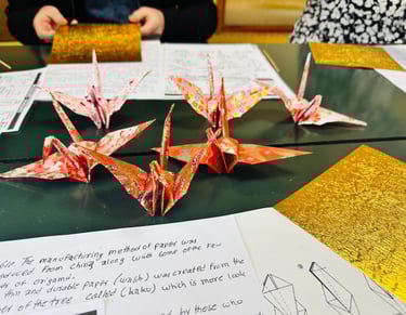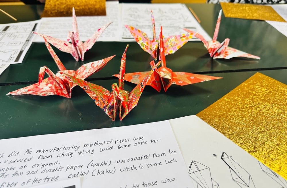 Before we can indulge in any of these, the group has an origami class to go to. A traditional family business we are taught by people who have learnt the trade from their parents who, in turn, learnt from theirs. It is a great class we are split into three different tables, each with our own teacher, but only one interpreter between us all, so we are heavily relying on the supportive noises and nods from our teacher. I was on a table with Ashley, Jas, Sarah and Marley and we all get through the first of our two assignments with relative ease, completing our swans fairly quickly. However, our second project is a little more complex and I think that at least one point each of us had a moment of ‘oh well I am completely lost now’, but nevertheless we made it through. At the end the teachers very kindly gave everyone a gift of a small origami piece they had made earlier and one person had a special one, a winning one, shown by a green mark on the back of the piece of card in your gifts bag. I instantly notice that Ashley sitting next to me has the green, she is champion again, not only at sushi but at origami as well.