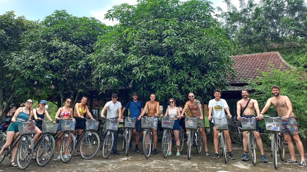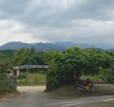 The rest of the day is spent doing the trip we did yesterday: boat, bus, back to boat and then back to bus. We got back to our old hostel just in time to collect the laundry I had handed in earlier, grab our bags and head out for a quick meal. Tonight we are on a night bus to Phong Nha Town, as I’ve mentioned before I’ve started to enjoy the night bus experience with reclining chairs and, having learnt to put both my bags in the luggage compartment and only taking what little I need in the bus with me, I tend to get a good night’s sleep. So as the bus starts pulling away I start to drift off once again as we travel through the night. The next morning once we are all checked into our hostel the boys, Viet, me and a few others head to breakfast. I use this as my opportunity to try a Vietnamese egg coffee. Now those who know me know I don’t like coffee but this, this, I also didn’t like. Don’t get me wrong I appreciated the sweetness from god knows how much sugar and condensed milk and the creaminess the egg gave it, I just don’t like the coffee tasting part but, hey, I tried it and the breakfast was good! After filling our bellies me and the boys join Lars, Hayden, Louis, Charlotte, Elain, Zara, and Lydia on a bike tour. We head through towns, fields and down winding roads to our first stop, ‘The Pub with Cold Beer’ and that’s not me forgetting the name, that was actually what the place was called. After some beers, a little food and a few games of pool we are off to our next destination.