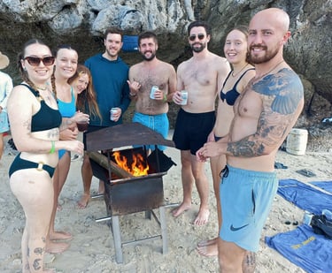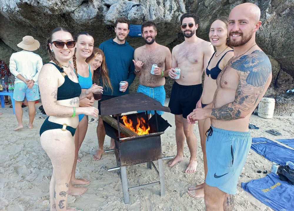 Today was spent travelling in various forms of transport but mainly buses and boats, boats and buses. As usual I slept for a lot of the time although I will admit that I did have a shot or two of whisky at one of the stop offs from a bottle I had in my bag, which probably helped me survive a day of travel. Our destination was Ha Long Bay a beautiful area, a bay full of small islands, sun and sea. In fact, if it wasn’t for all the party cruises that seem to be all over this place, it would be one of the most peaceful places I have been! However, the group learn to it’s surprise we will also be joining a booze cruise – glad I had an early night last night! We finally reach the last speed boat that takes us to our cruise ship; it is massive with roughly six different jacuzzis. The first business, once we are on the boat, is lunch which I am thankful for as I am starving, it is about the quality you would expect on a booze cruise but I hammer it down. Next we all get changed into beach wear and head to a little beach to swim and relax, they even set up a fire once the sun sets. It is a nice experience with a few beers to help the time pass, the only issue being, while swimming I don’t realise how shallow the water is, and completely cut my foot up on some coral. After the beach we do some boat jumping off the roof of one of the small boats and then head back to the cruise to start the party. It is a chaotic night, as one can imagine, and a rather weird one with some of our fellow passengers being slightly less than savoury characters.