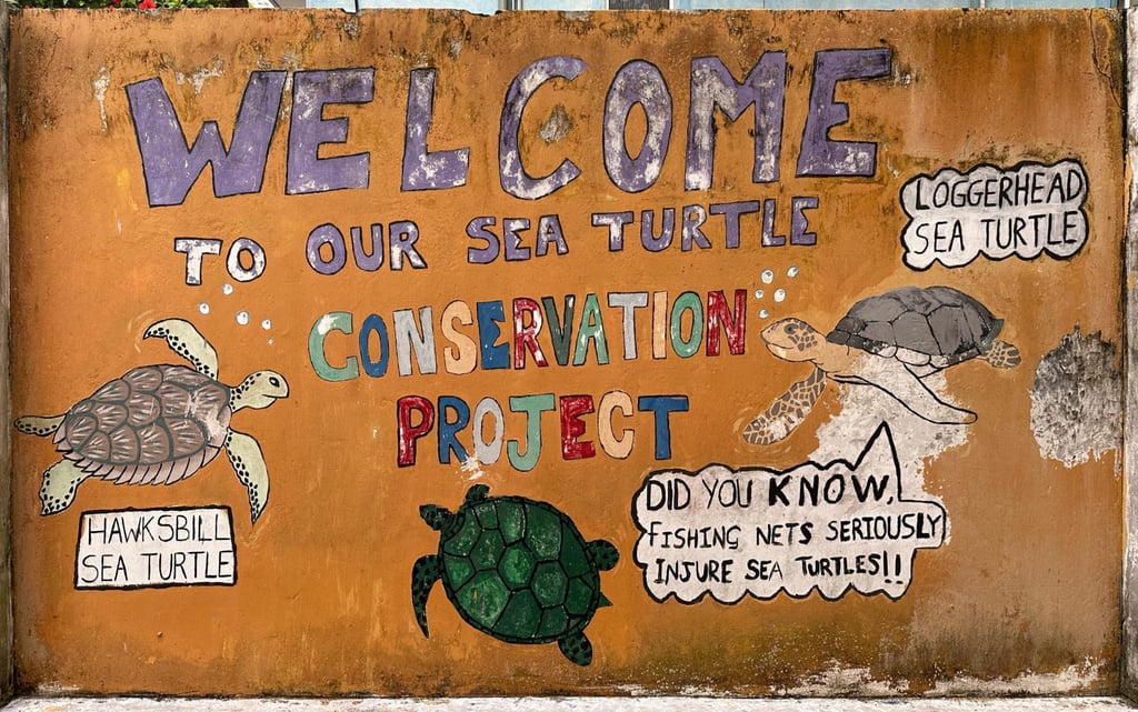 After what was a rather stark start to the day, we get back on the bus before reaching our next stop – a turtle conservation centre/sanctuary at Unawatuna. The mood is instantly lifted. After forming a line to wash our hands, to make sure we don’t bring in any potential germs, we are welcomed into the first area. It comprises a caged sand pit with a few piles of sand evenly spaced out in even lines forming a square. These are where the eggs are kept – 1,600 according to the worker showing us around. They have a variety of turtles here Green Turtles, Hawksbill Turtles, Leather Back and more. We are guided around the centre that has numbered tanks taking us through the journey and life of the turtles; from a tank of turtles that are roughly a week old up to a tank with turtles that are over 150 years old. It is their policy that they release the vast majority of turtles into the wild as soon as they are born, but there are some exceptions.