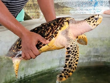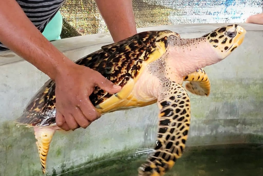 If a turtle is born female the research centre holds onto her until after she has had her first breeding year before then releasing her. This is for various reasons, one being that female turtles are extremely rare compared to males and with a 1% survival rate if released young in the wild the centre want to give the females a better chance of survival. Secondly as number of turtles in the wild are still very low, they like to breed the females who lay hundreds of eggs at a go, at least once before release to help keep increasing the numbers. The centre also doesn’t release turtles that are considered to have no chance of survival if they were released. This comes in a couple of forms during our tour. There are a couple of rare albino turtles that are mercilessly hunted in the wild for the pet trade which props up black markets that deal in illegal animal trading. Others that aren’t released are turtles that have been brought to the sanctuary due to injury and suffer in a way that means they are unable survive in the wild, for example a missing limb. There is also a turtle that has eaten so much plastic in the wild, mistaking it for jellyfish, a turtles favourite meal that air has become trapped inside its shell and it now floats and is unable to dive underwater, meaning release would incur certain death. The group enjoy seeing the turtles up close and get lots of photos.