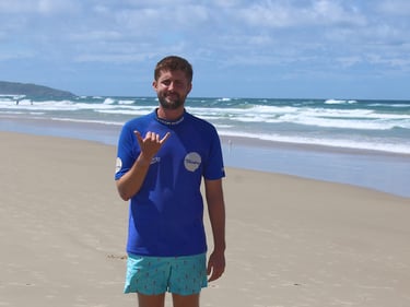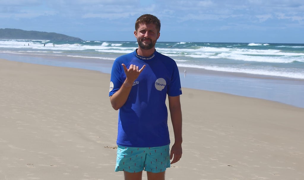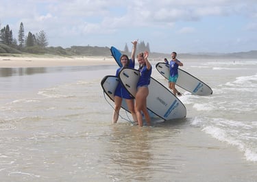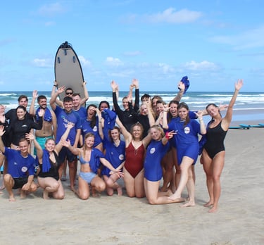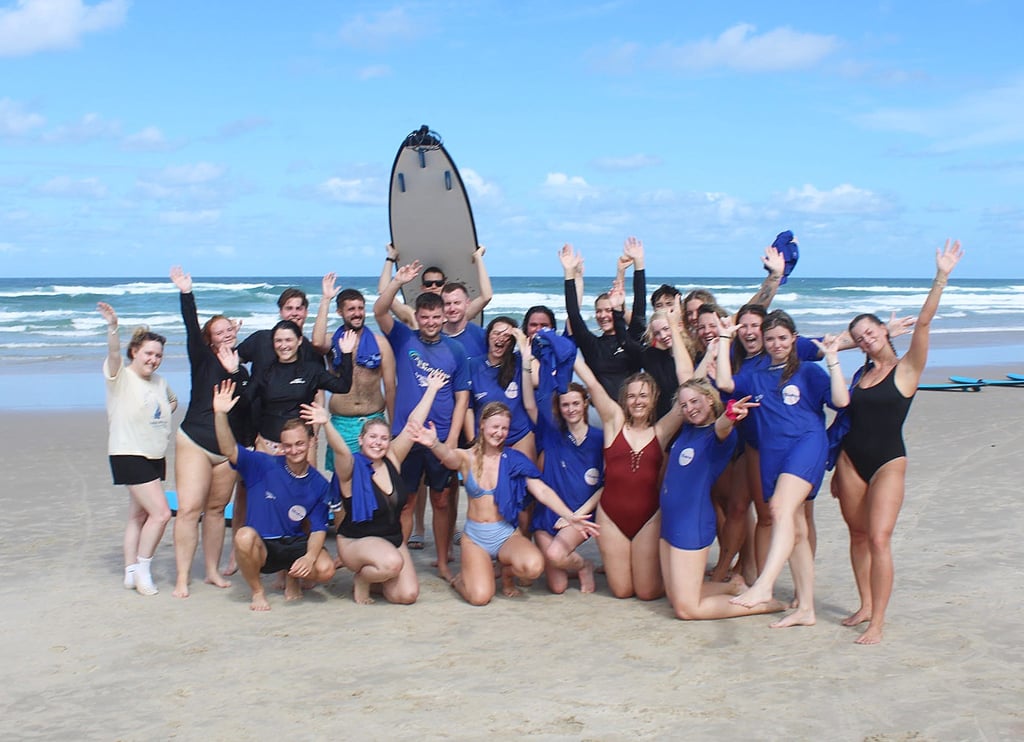 Now nice and clean and fuelled up I am ready for today’s main activity: a two hour surf lesson. The group loads onto a couple of buses, Kerry takes over the music in the bus I’m in and plays the Barbie soundtrack for pretty much the whole ride – apparently pink goes with everything, who knew? The ride goes quickly as the group slaps on waterproof suncream and zinc, a new product I have discovered, that is apparently suncream on crack’ and favoured by surfers around the world. Once on the beach we are given our rashies, a protective top to stop sunburn and chaffing when on the boards, then we pick up the boards and head to the beach. It is a good lesson, although four or five instructors for 24 people means not much one on one time, but the group still do well with most people managing to catch a wave or two.
