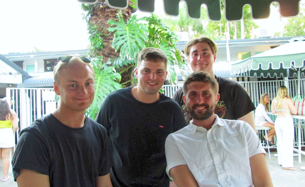 Me, Fiona and Jessica, after a few drinks with Matt and Aaron looking on