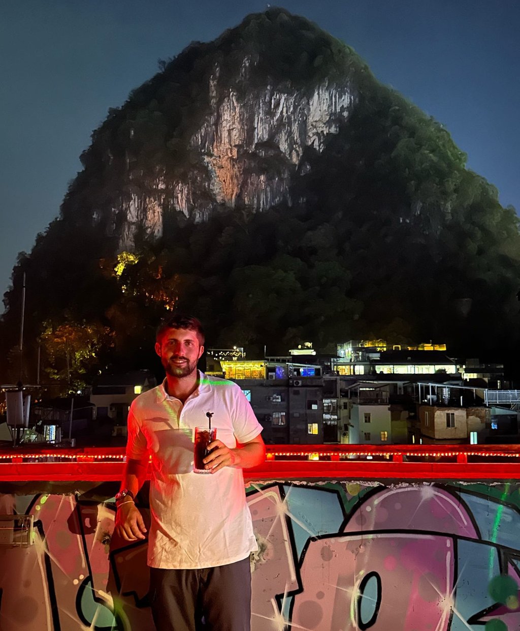 Once back at the hostel we shower and change before heading out for dinner. Ping shows around some of the streets of Yangshou, a beautiful town. It is getting busy; tomorrow is the start of the mid-autumn holiday, a rather large eight day national holiday in China and Yangshou is a very popular holiday destination we are learning. Working our way through crowded street with bright lights, bustling bars and restaurants, street entertainers and vendors, we are taken by Ping to a local restaurant to try an array of foods. It is a nice meal and after the other Tom and I decide to go for a drink. Ping has suggested a roof top bar but it takes us a while to find it, such a long time that we stop and have a drink somewhere else first. Lucky we did as when we do find it at 7:45pm it is closed, it doesn’t open until 8. So we decide to go for wander finding a place that does a local beer for the equivalent of £1.20 at the edge of the market. Once we’ve had our second drink of the evening we head back to Mojo at 8:30 to find it open but empty. It remains that way until roughly 10pm – I am starting to realise bars here aren’t really a thing until after 10. Anyway we end up running into some other English people who are here to study, and stay up later than we should. The night ends with us all in a Maccies for a drunken bite to eat before bed.