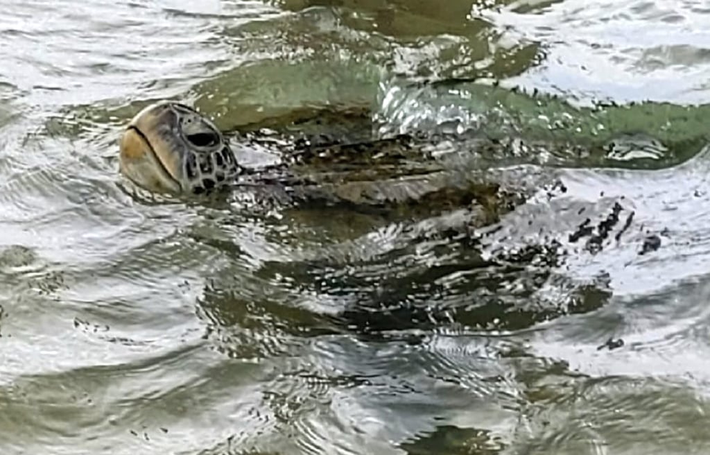 Once full the group decide to walk down the beach to a spot Jordan has just messaged the group about where we can paddle with turtles. We start walking along the beach somewhat misjudging the current. I get soaked before having to scramble up a wall into what looks like a work site for a new hotel being built. We then have to find our way back to the road after coming across the mouth of a river emptying its very very dark brown waters into the sea which we, unsurprisingly, don’t want to walk through. Finally we reach the spot and I feel a little uncomfortable.