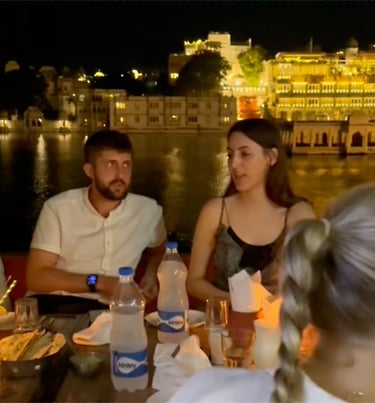 Will, Tia, Rachel and me with a backdrop of the beautiful city of Udaipur and its lakes