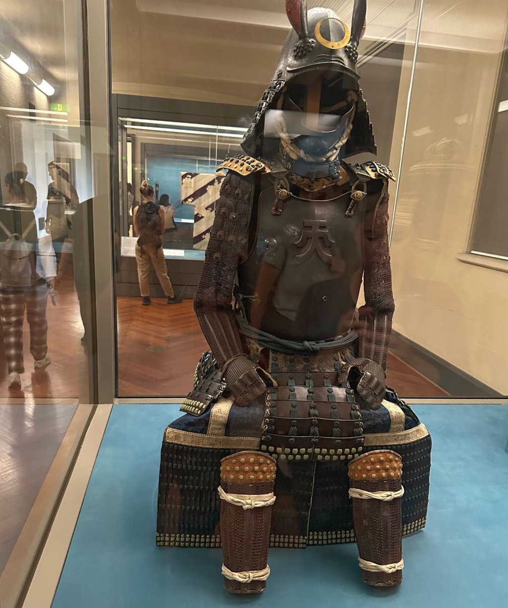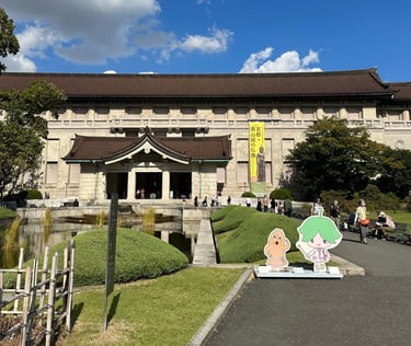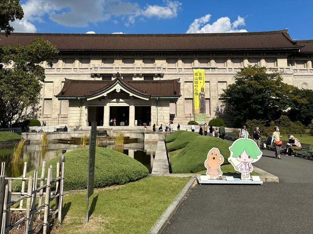 Having been on our feet all morning by the time we are leaving the zoo both Jasmine and I agree it is time for lunch. Luckily for us this park has a number of lovely looking cafés. We head to one with outdoor seating making the most of the beautiful weather. Taking our seats at the café we look over the menu, thankfully with an English translation, and make our choices. I for rice covered with an omelette and beef ragu type sauce, it is very nice. However, I am little jealous of Jasmine’s choice; a platter style dish with pork and various vegetables and pickles, it looks delicious. But we are both jealous of the kid at the table who also has a platter of sorts but his comes in a bullet train style plate that looks awesome! After our food and another cup of tea for me, we continue to explore the park making our way to the National Tokyo Museum, an art museum with a mixture of historic and modern art from around Japan. It is the oldest museum in the whole of Japan. I am excited to get my first taste of Japanese history, however Jas and I did spot an advert for cold beer on our walk to the museum so we are now both looking forward to coming out of the museum as well!