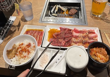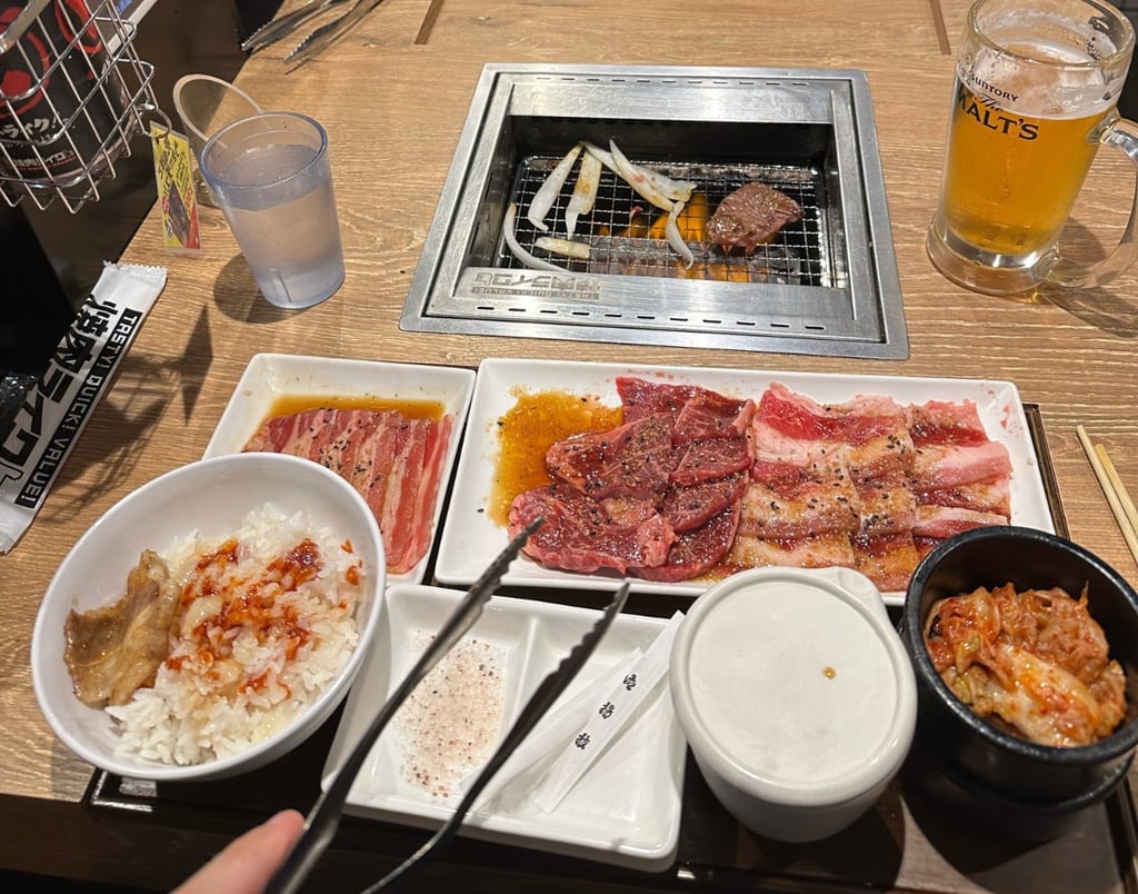 Later we meet back up at the New York Sky Club. We are joined by Amanda, another member of what will soon be our group. As I arrive it takes me a while to figure out how to get up to the bar. The lower levels of this massive building are offices and I have ended up walking around them like a headless chicken. Finally I figure out how to get through the offices and up the two separate elevators to the hotel that the bar is part of. Amanda, Jas and I enjoy a single drink while admiring the view. We would have stayed for another if there wasn’t a surcharge for non-hotel guests. After the drink we decide to head out for some food and follow a crowd of people until we stumble upon a bbq style restaurant. The type of place that has a grill in the middle of the table so you can cook the meat you order. The meal was delicious and the company great. I am looking forward to seeing who else will be joining our group. I joke with Amanda and Jas that worse comes to worse we can form a clique and just recruit the best people. After the meal Amanda kindly lets me jump in her uber as she heads for an onsen to get me closer to my hostel. I then order another uber for the final part of the journey which, slightly awkwardly, gets accepted by the same driver who now has to go round the block to pick me up again.