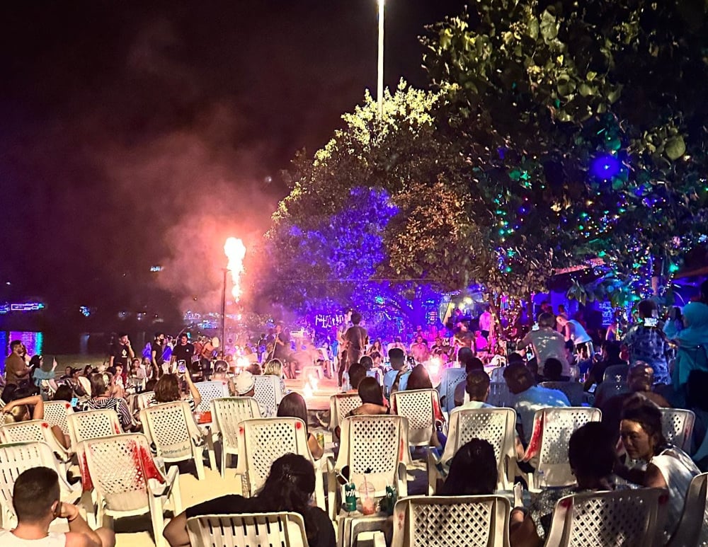 Now all fresh we meet up with Char and Louis and head out to dinner and a cocktail or two in the middle of town. As we finish our meals we are joined by Hayden and Jess from our last tour. They are on the Island too and we all decide to go on a night out together. As the boys and I are only on the island for a single night we decide to make the most of it so we start the night by going to see the fire performers on the beach. We don’t want to pay the clubs exorbitant prices so rather than sitting, we enjoy a cold store beer while standing on the beach and watching the show.