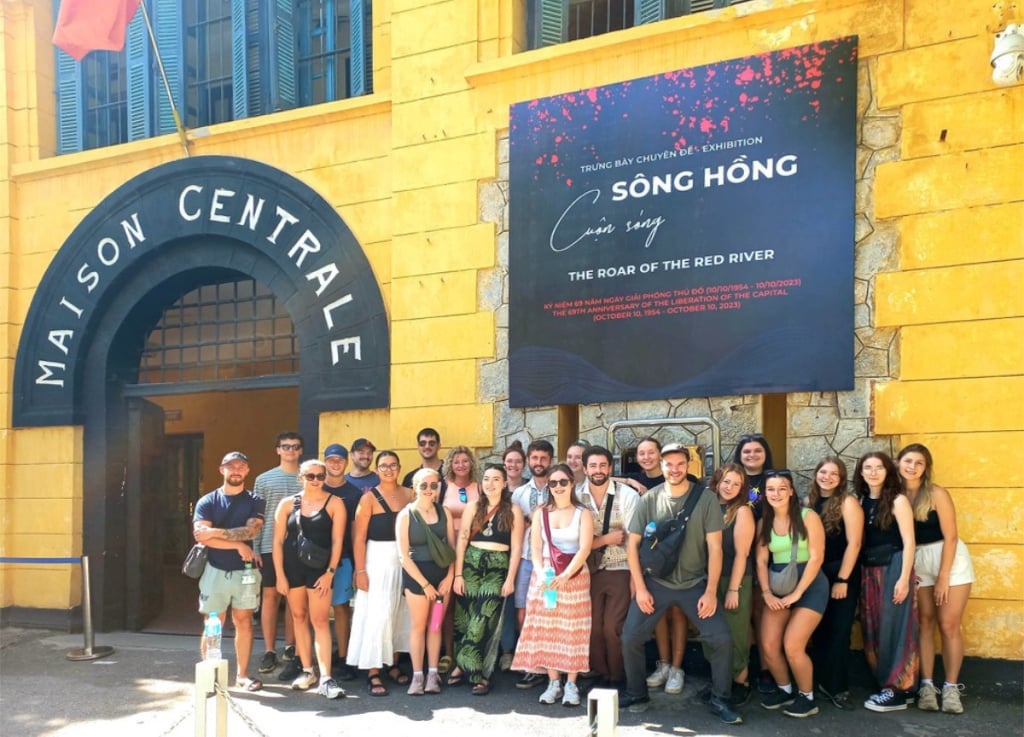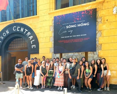 The tour ends at the Hỏa Lò prison, commonly translated as ‘fiery furnace’ or ‘Hell's hole’, it also means ‘stove’. The name originated from the street name phố Hỏa Lò, due to the concentration of stores selling wood stoves and coal-fire stoves along the street in pre-colonial times. It was a prison built by French Colonialists to lock up patriots and nationalists who opposed the French colonial rule of Vietnam. The French called the prison Maison Centrale, 'Central House’. To build the prison in such a strategic area the French displaced the villages, either by moving or simply destroying homes, pagodas and communal village buildings. It is a fascinating place, but the documented treatment of prisoners is brutal. Viet does warn us that, the now museum, is a little one sided in its re-telling of history. But to be honest, as it was a prison used to subjugate Vietnamese people in their own land, I am of the opinion they should get to be a little one sided when re-telling this part of their history: a side that, in this particular case, I find myself on! I will admit that, although a great museum and place that should be shown respect, I find myself cracking jokes with Charlotte and Elain as we wander round, in an attempt to lighten the mood.