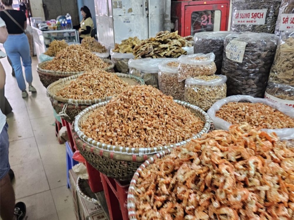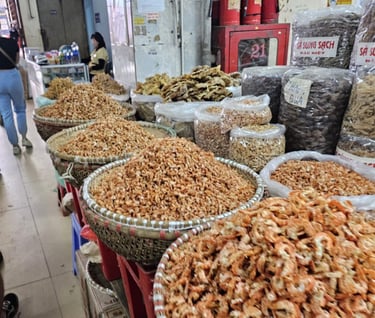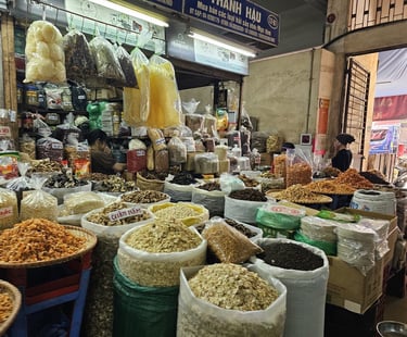 I woke up the next day a little worse for wear, so decided to skip breakfast but I am ready in time for the morning activity: a tour around the local markets guided by Viet himself. It is a great tour, down many winding streets with shops and stalls selling spices to socks. Unsurprisingly my favourite part is when we make our way past all the local restaurants which are filling the air with delicious smells. I also especially liked that road because as our group walked on past, a local man who was on a video call turned his camera around and said to whomever he was talking to, and I quote, “Look the Caucasians have arrived”, which I have to admit made me burst out laughing! Some of the group struggled as we walked through the section of the market with the butchers, meat displays in Asia are a lot more graphic and brutal than back in England. Personally I find it all fascinating and awesome but understand how it may be a bit much for some people. I ask Viet if, like in China, they eat dog and cat here, he gives me a look as if to say you aren’t helping calm people down! However, later he pulls me aside and says that yes that it is eaten in Vietnam, but tends to be more rural areas and, if I am really interested, there may even be an opportunity for me to try some later on.