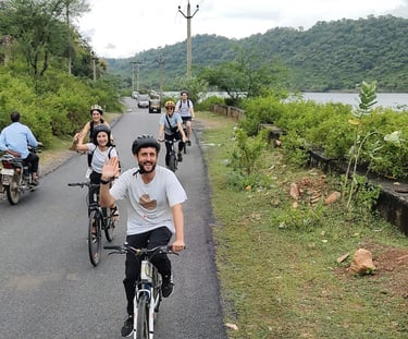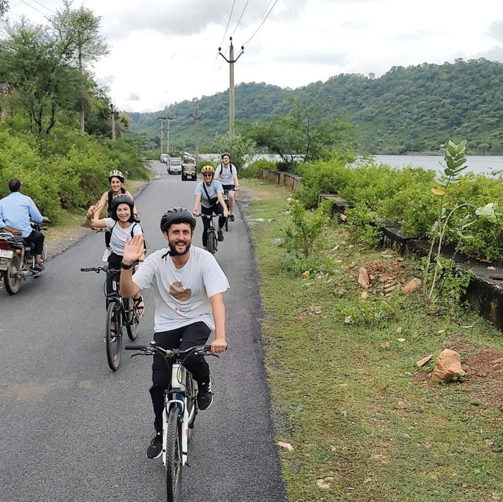 Speaking of, after a quick tea/breakfast, we head out on our bus to a random road where there are bikes waiting for us. They are all Giants, which I have been told is a pretty expensive brand for a bike tour in India. The tour is amazing, easily one of the favourite things I have done on this trip and not just because I was in desperate need of some exercise but also because of the beautiful views and amazing leader. The bike ride in total was roughly two hours and took us all over the place. We started by coasting along Lake Badi (known locally as the Tiger Lake) – a beautiful lake surrounded by nature reserves of vast greenery and hill sides. The guide tells us about the many different types of wildlife here including, you guessed it, leopards (the tigers were hunted to extinction by rulers and the upper classes of times gone by). But with six leopards in the surrounding areas it is still an important ecological area.