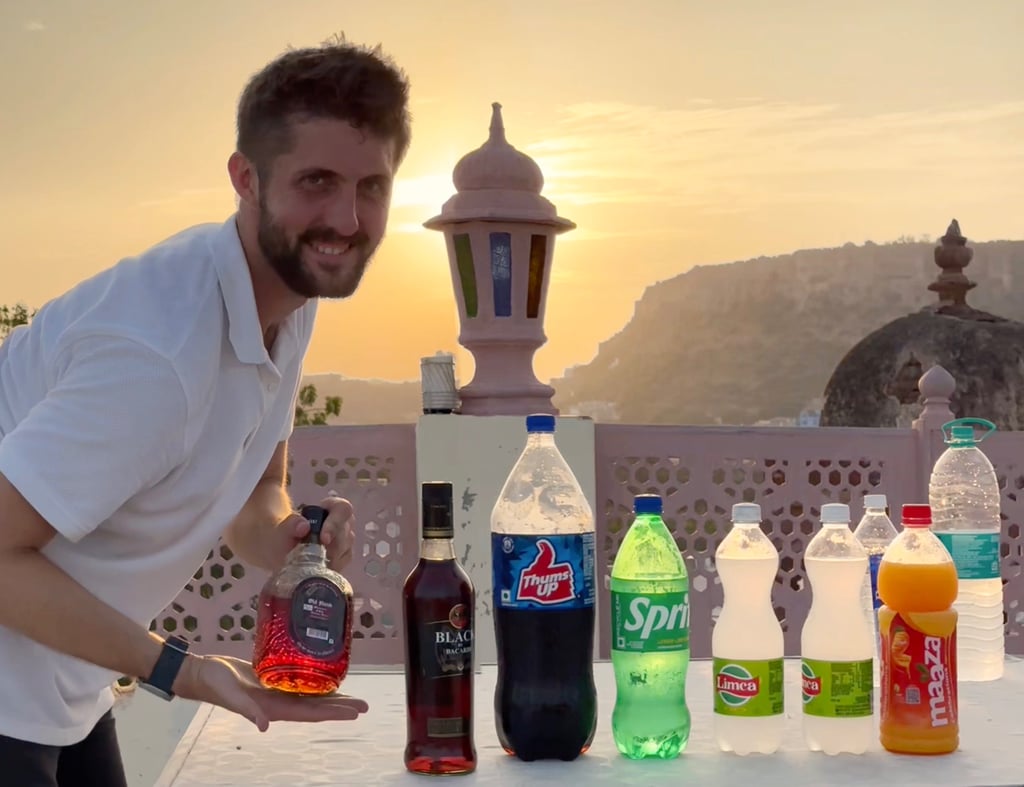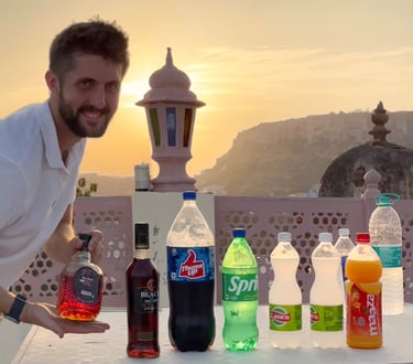 We later go for a walk into town through bustling streets each one seeming to just be busier than before. Our destination is a busy intersection which has a shop we can buy some drinks; the hotel doesn’t serve alcohol. Holly, Rachel, Stu and I decide to get a couple of bottles of rum between us. A traditional Indian rum called Old Monk which is very nice and bottle of Bacardi Black which isn’t as nice. Once back at the hotel we shoot straight back up to the roof to enjoy the sunset while we have a couple of drinks. Once the sun has set and the air cooled we are served dinner on the roof. Again it is delicious; I have yet to have a meal in India that doesn’t blow me away.