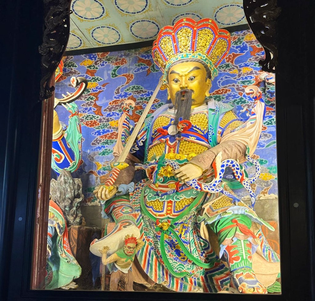 Leaving the museum, Erika asks Simon if we can visit the Qingyang Taoist Temple on the way back as it is next to the metro station. I am glad she did. It again is another amazing temple to view and I delight in seeing the differences between the two religions and their iconography. I have to say though the blending of different religions throughout Chinas history is very evident. Many of the temples take on similar architectural styles and colour schemes. This Taoist temple even having a statue of Buddha in the same main hall as the Statues of Tao and his generals, although it is on the back side of the display. Like in many cultures the lines between different Chinese religions, regions and ethnicities seem to have been rewritten many times throughout history, so much so they have become rather blurred. Simon, our guide, says it is funny to see so many people diligently praying and wishing in the temples when he doubts many of the people here follow any religious guidances at home. They just come to pray and ask for things, but in the words of Simon, “I don’t think that’s how this is suppose to work.”