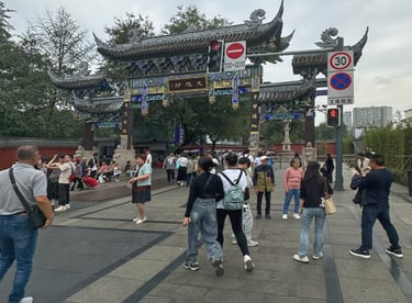 After lunch we get the metro to the Sichuan Museum were Simon leaves us to our own devices for a couple of hours. I enjoy walking around several displays about the history of the area although I struggled only being able to read the occasional sign which had an English translation. I was therefore left with little context for the actual displays, but a pleasant experience all the same. Towards the end of the two hours Erika and I were sitting on the stairs near the reception, our assigned meeting spot, and were approached by a group of school children. At first we had assumed they wanted a photo of us as, like in India, we had found ourselves being as much as a tourist attraction for the locals as the attractions were to us. However after some back and forth on a translation app we realised they wanted to interview us for a school project. They asked us about a recent video that has gone viral in China about a jade teapot in the British Museum that turns human and seeks the help of a journalist to find its way home to China. First released on China's version of TikTok, Douyin, it has been played 270 million times on the platform.The video’s popularity has re-sparked debates over the UK’s refusal to return historic goods to China and the number of culturally and historically important pieces we keep from their homes. A rather awkward thing to be asked about while sitting in a museum in China. But we answer to the best of our abilities and the kids seem happy enough with our answers, so hopefully we helped them get a good grade!