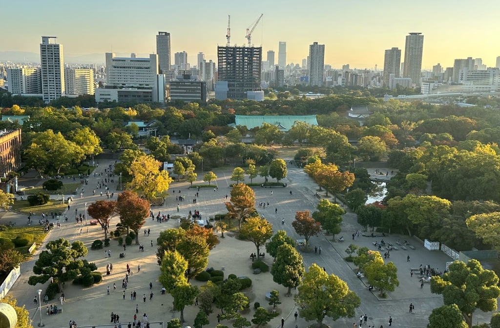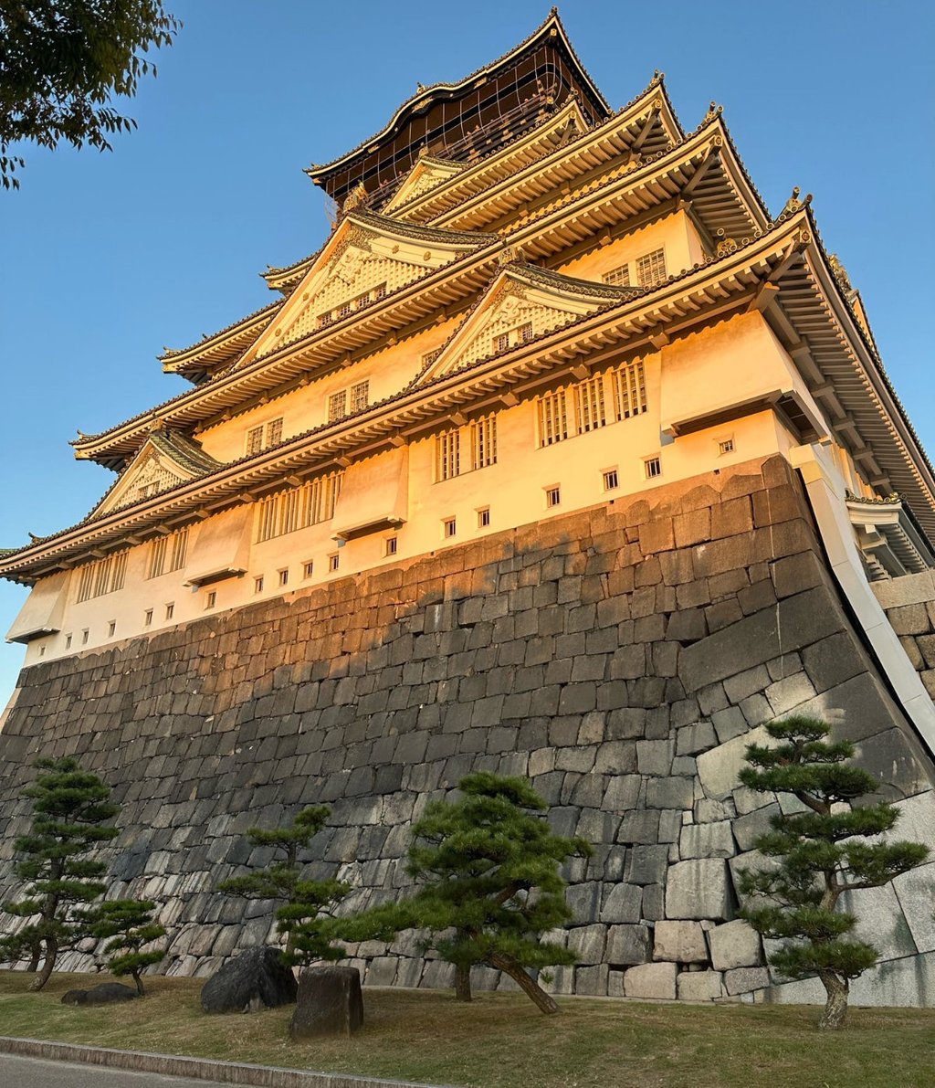 Once joined up top by the group, we work our way around the viewing station trying our best to get pictures without any other tourists in and guessing the use of many of the buildings we can see before reading about them. Once we have sufficient photos we start making our way down. I am with the Guernsey Gals for most of it, I quickly read about the history of the castle and its founder and regurgitate it back to them. Construction began in 1583 by Toyotomi Hideyoshi, who was a samurai and Daimyo. It was built for strategic purposes but also as a symbol of power and wealth, Toyotomi having risen from a poor peasant family, defeating many war lords to unify Japan. During his rule he wasn’t the most popular due to introducing land taxes and his invasions into the Korean Peninsula. The castle was besieged in the summer of 1615 with thousands of soldiers captured and tortured. It was rebuilt in the 1620’s after the Toyotomi clan and its loyal supporters had been defeated. However, in modern Japan Toyotomi is highly regarded as an example of one’s ability to rise from a peasant to ruler of Japan, as well as for his influences on Japans history. The castle looked pretty cool too.