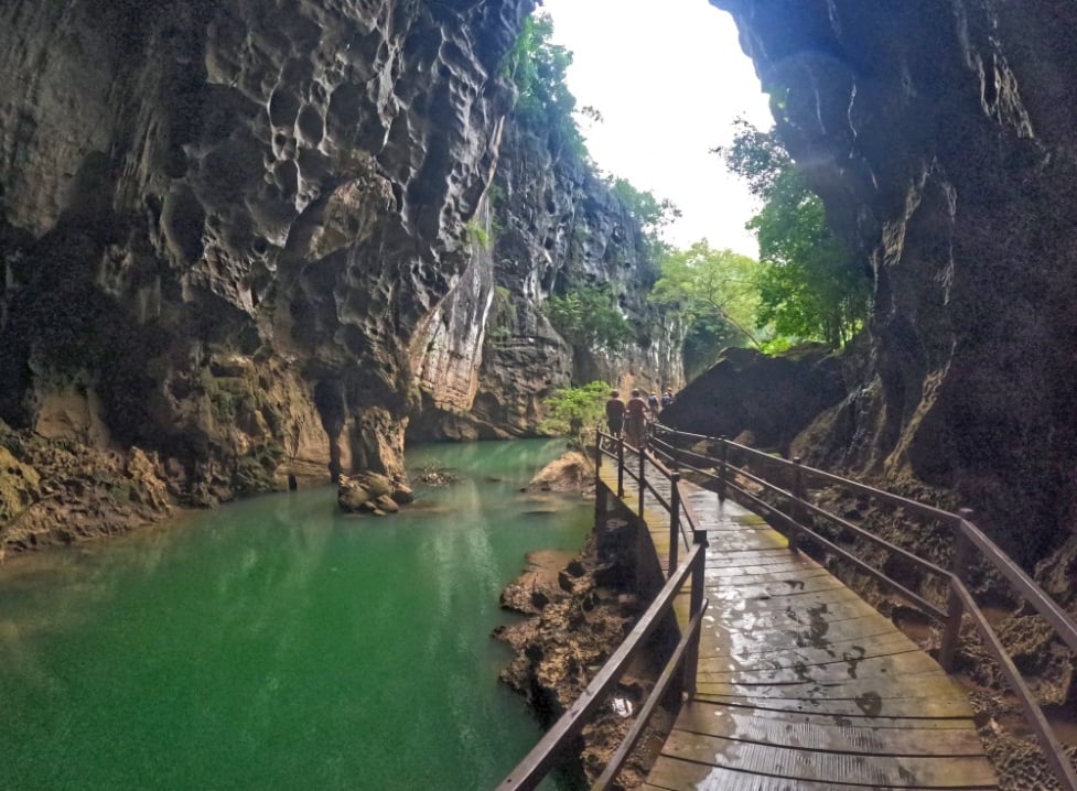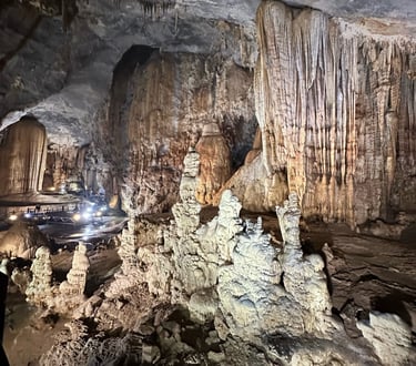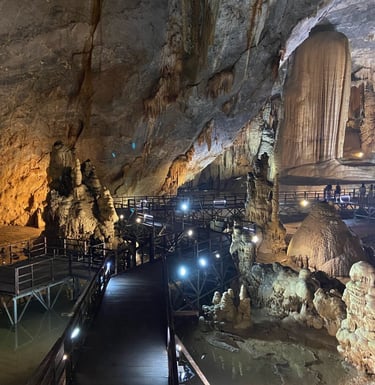 Woke up excited today, I have been looking forward to it for ages. Today we are visiting Paradise and Dark Cave in Phong Nha. My brother Joe, told me about his visit and it sounded awesome. So I was up, ready and eager to jump onto the bus to the caves. Once we got there we were told Paradise Cave, the longest dry cave in Asia, was first. But it required a hike to get to there: there are two options – the slow but easy ascent or the hard and fast. Being excited to see what was inside I chose the hard and fast. This was probably a mistake, given that once I was at the top with the other hard and fasters, we had to wait for the slow and easier anyway. But, once everyone was up and we had been given an introductory talk about the cave and the beauties within, it was time to enter. It is a massive cave with stalagmites and stalactites of varying shapes and sizes. If one is into caving it is indeed an impressive sight to see, but, I have to be honest I am left a little disappointed. I know from what my brother had told me and from research I have done that further into the caves is where it really gets good. You see the group only did the first part of the caves, and while impressive, it was nothing compared to the internal eco-system and lake that I know one finds venturing deeper into the cave. However, still an impressive cave and once I hear the price to go the full length I am not surprised we aren’t doing it, it is in the thousands apparently. Anyway after our trek back down, we have to get a mini bus back to the Dark Caves, but first lunch. Although most of the group seemed to be unimpressed I rather enjoyed it, there was a lovely lemon grass and chilli broth amongst other things. To be honest this group’s appetite for ‘foreign’ foods isn’t the most adventurous, but hey, that just means more for me.