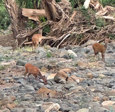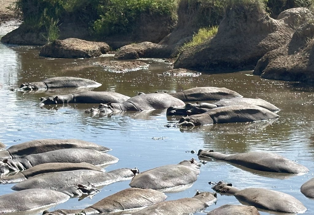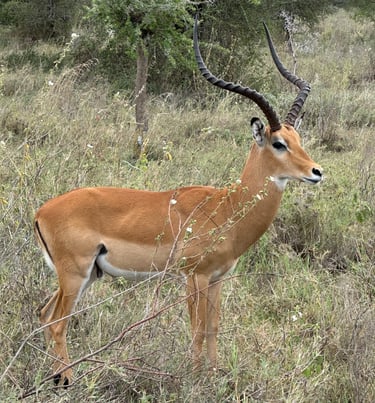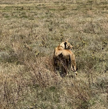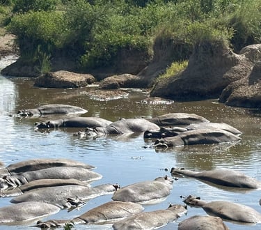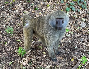 The next morning we all awake with excitement for our first official Safari day. It is an early start though, 6.30am, but who cares, we are going on safari. After a quick breakfast we meet are driver Jabshir, I am lucky, my parents have arranged a private jeep and driver for us for the whole of our journey and after loading up we are driven to our next spot, drop our bags at the hotel that overlooks Lake Manyara and are quickly off to the Lake Manyara national park. The national park covers 100 square kilometres and used to be very different, but since 2020 increased rains have lead to the plains being flooded and changed the natural water PH from brackish alkaline to fresh. This has caused devastation to not only the land animals who have lost tons of habitat but also the marine life which are extremely sensitive to changes in the water's PH levels. Now there is no krill in the water as it cannot survive the fresh water, so this park no longer sees the migration of flamingo and the loss of the plains means no more water buffalo or gazelle to name a few. That being said in a short space of time we are lucky enough to see forest elephants, hornbills, the arse of a lion, hippos, bushbucks, impala, giraffe, baboon, blue velvet monkeys and a few antelope. The parents and I are chuffed, Jabshir however insists this is 'soup' – merely a starter to our safari, nothing compared to what the coming days holds for us. But so far we are pretty happy and now even more excited to be heading to the famous Serengeti tomorrow.