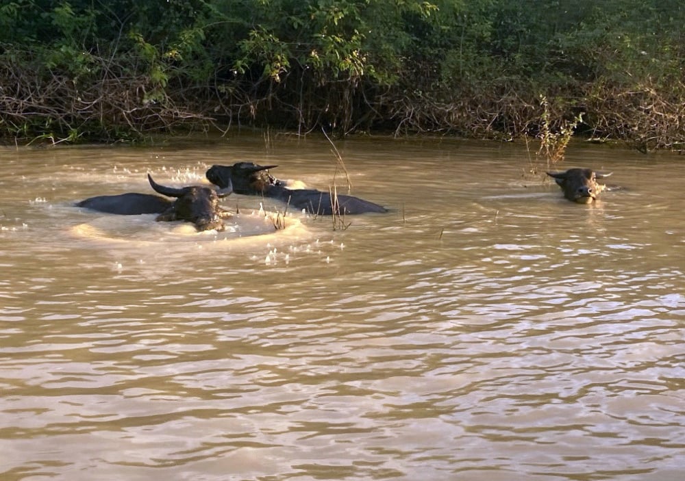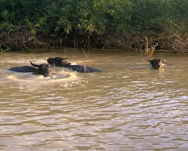 After the village we head to a local crocodile farm, another floating building which has a wood made structure that houses about five crocodiles that people can come and see. It is a rather odd experience but it is always cool to see a crocodile or two, along with some water buffalos along the way.