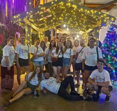 I luckily slept for pretty much the whole bus ride, probably aided by the Valium I took and I wake up in front of the Lub D Siem Reap hostel. After checking in I join India and Nicole on a trip to the nearby market. I need to buy some shoes having lost my flip flops and my Vans being pretty much destroyed at this point. Nicole and India help me choose as I have little to no fashion sense and, to be honest, I don’t really care but £20 for a pair of flip flops and trainers that are both fairly comfy is okay with me. After the market I meet up with the boys and we head to a breakfast place that Alex says has good reviews and it does not disappoint. I have an egg florentine with bacon and mushrooms, a good cuppa tea (a rare thing in Asia) and possibly the best banana milkshake I have ever had. As we pay, the cashier tells us about a beer festival/Christmas market that is happening in the local area. So of course we head on over joined by Poppy and Louis and spend the rest of our day sampling a wide range of lovely beers, my favourite being a honey mead, which I referred to as the nectar of the gods; maybe I’ve read one too many Greek mythology books! Once filled with beers and merry we head on back to the hostel for a few games of pool and another beer or two before heading to bed for what is a relatively early night for us!
