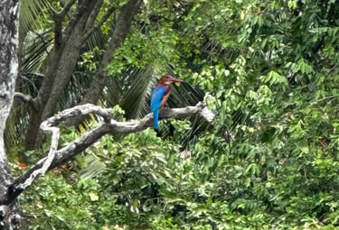 After we had all made it back down to the bus, we head off for lunch. A local family cooked for us after a little wander around the lake their home is next to. We were even ferried across one small waterway where we saw a beautiful Kingfisher.