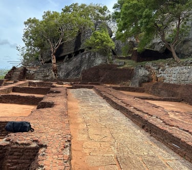 Once you have passed the water terrace, only one side of which has been uncovered by UNESCO archeologists – they hope to reveal the mirrored side in coming years – you reach the garden terrace. Now one has to use their imagination at this point as, unlike baths and buildings, plants and flowers don’t leave foundations or ruins as clues to a past life. Of course this whole site, much like most of Sri Lanka is wonderfully green and lush; full of amazing plants and wildlife, including monkeys who have been known to steal snacks right out of tourists hands. However, one can imagine how beautifully manicured and meticulously designed the gardens once were, especially when the guide informs us that, when this fort was occupied, the surrounding forest wasn’t there, giving the soldiers a view of up to 25km to spot any potential, incoming attacks.