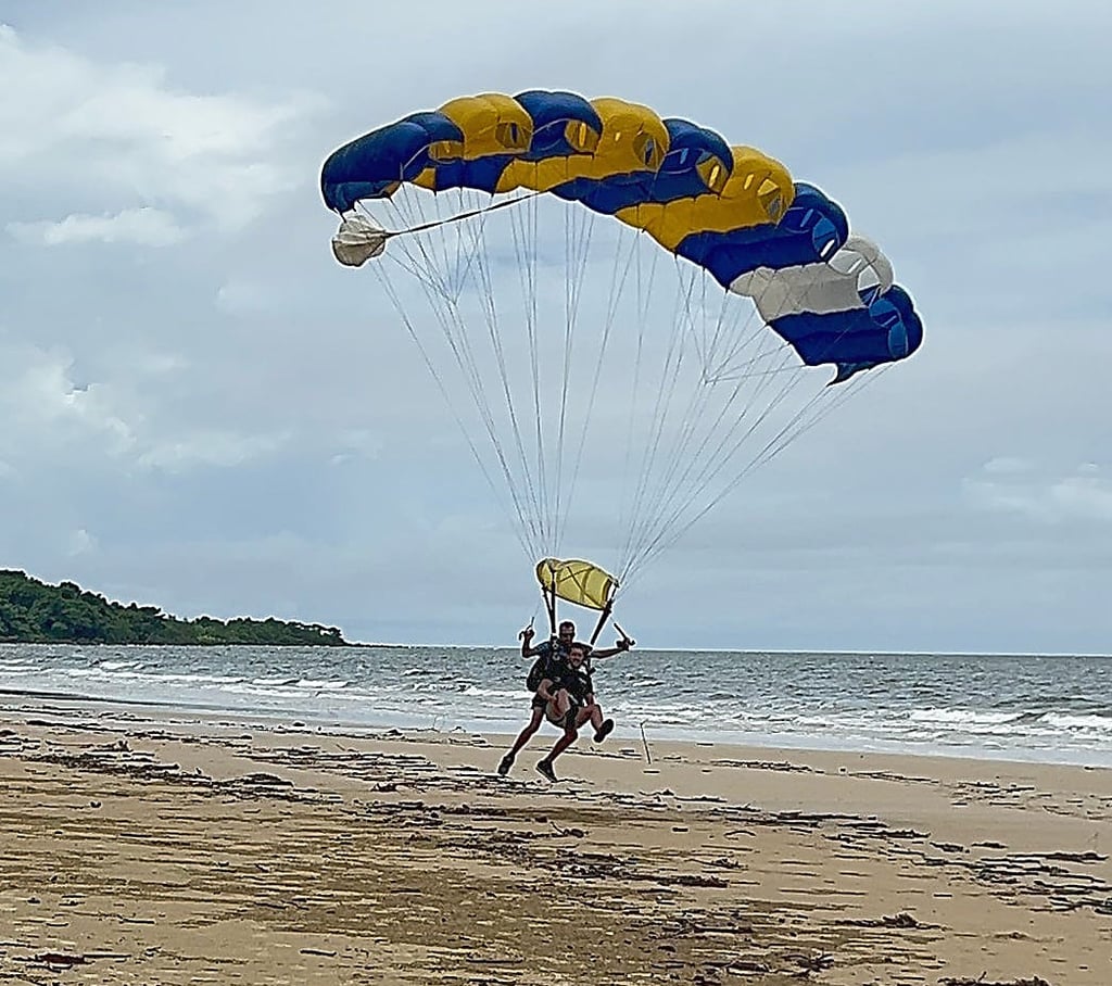 It is an amazing experience I love every second, the free fall is such a rush, what a feeling and then the shute is pulled and you get the chance to float on down and enjoy the amazing views as you make your way through the clouds. Once we are down the others comment on how none of us can stop grinning from ear to ear. I have to say to anyone considering doing one but is a little scared, DO IT!! It is hands down one of the best experiences of my life. Unfortunately once we are down the clouds have really rolled in and we have a long wait until the final group can go. Luckily for us there is a local bar/restaurant we can head to for a drink and some much needed food while we wait. At last the final group is able to go and after we have eaten we head to the beach and get to watch them come floating down to land on the sand.