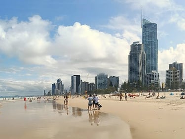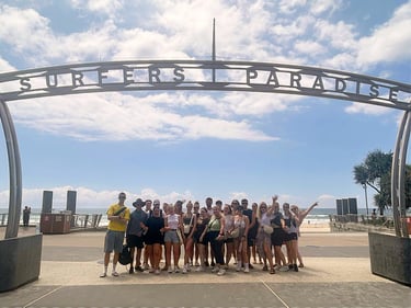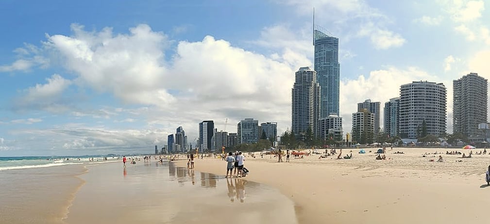 It was a rushed atmosphere in the room that I woke up to this morning, but the drinks and late night kebab have not made for a winning combination for me, so I am slow to my feet and my packing, but manage to get it all done before we head to the bus station. Our next stop, Surfers Paradise. A name that, I have on good authority, the place does not deserve. Although home to beautiful beaches and good weather, the surf here is apparently average at best and the sea’s full of amateurs and tourists. At least that is what many Australians, who I imagine know a hell of a lot more than me about surfing, believe. Later, once we arrive and are taken on a tour of the place, Mollie actually informs the group that the name, Surfers Paradise, derives from bureaucratic bullsh!t rather than a love of the sport. A rich man in the area opened a hotel called Surfers Paradise some time ago, but to his misfortune the area and his hotel weren’t doing nearly as well as he had hoped so he convinced the powers that be the town needed a rebrand. The walk ended with what may be one of my favourite things ever, a free burrito! Apparently Guzman y Gomez, better know as GYG, has an offer when one downloads their app: in the form of free food – my favourite type of offer!