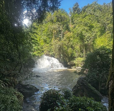 Woke up this morning and did something I’ve not been doing a lot of, while travelling; I tucked into breakfast. We’ve got a hike planned today and in this heat I’m gonna need the energy, so a scrambled egg and french fry sandwich, or two, won’t go amiss! It’s a day of trekking and waterfalls – some of my favourite things. It was nice getting out in the jungle although 23 people walking along dirt paths in a jungle in around 30 degree weather is not a recipe for quick speeds! So as the group slowly makes it way through the forest we stop at various different waterfalls and swimming holes so we can all cool off and have a splash around. Now I say waterfalls but they tended to be more like small rock slides to me but that’s just even more fun, who doesn’t love a natural water slide! I do get myself into a little trouble. When we get to the final water hole, following on from a rocky mini waterfall which is unsuitable for a water slide, there is a nice bay like area with a small batch of sand next to some fairly settled water where we are told to swim. Of course my intrusive thoughts win and I go head first over the edge the other side and slide straight into strong currents, luckily I’m a strong enough swimmer. I can quite easily get myself out, but I do feel bad when I see two of the local guides panicking and come running over as if I am about to be lost to the forest forever. But, hey, it was fun and after that I did as I was told and stayed in the still water of the bay.