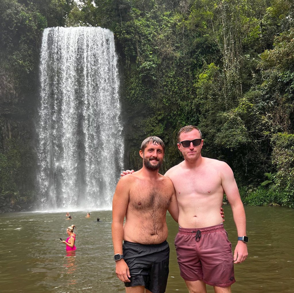 Blooming Bromance (Dan and I) at Millaa Millaa Falls