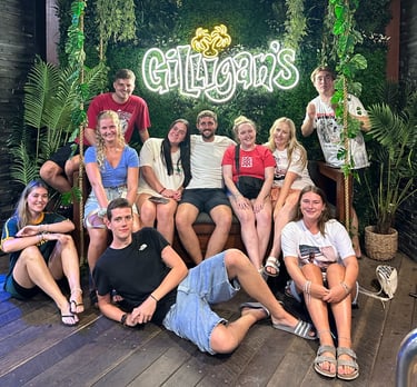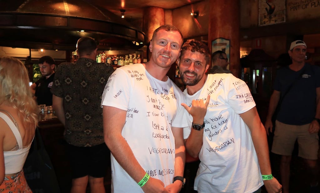The following day I was partaking in an activity that not many of the group had signed up for, Bungee Jumping! It is Aron, Amy and myself who are taking the plunge. I have to say although exhilarating I find the whole thing rather more nerve wrecking than I expect. The skydive seemed to come easy but I suppose being the one that actually has to do the jumping is a little harder. I find that even though my brain is saying yes, my legs are saying ”what the f@ck are you thinking? Are you crazy! We are gonna die!.” However, I eventually build up the courage and jump and it is an amazing experience, I end up getting properly dunked in the water below. Aron and I like it so much we go again, this time facing backwards which is just as scary it turns out. Amy does not go again but that isn’t much of a surprise because just the fact she did the first one has thoroughly impressed me, as she was visibly shaking with fear as we walked to the platform. Once we are all back at the hostel we start preparing for our final bar crawl and white lies tee shirts. A simple concept: everyone wears a white tee and everyone else writes ‘white lies’ about the wearer on it. The bar crawl is a good one with plenty of drinks flowing and even a dance or two, a final fun bar crawl of my travels.