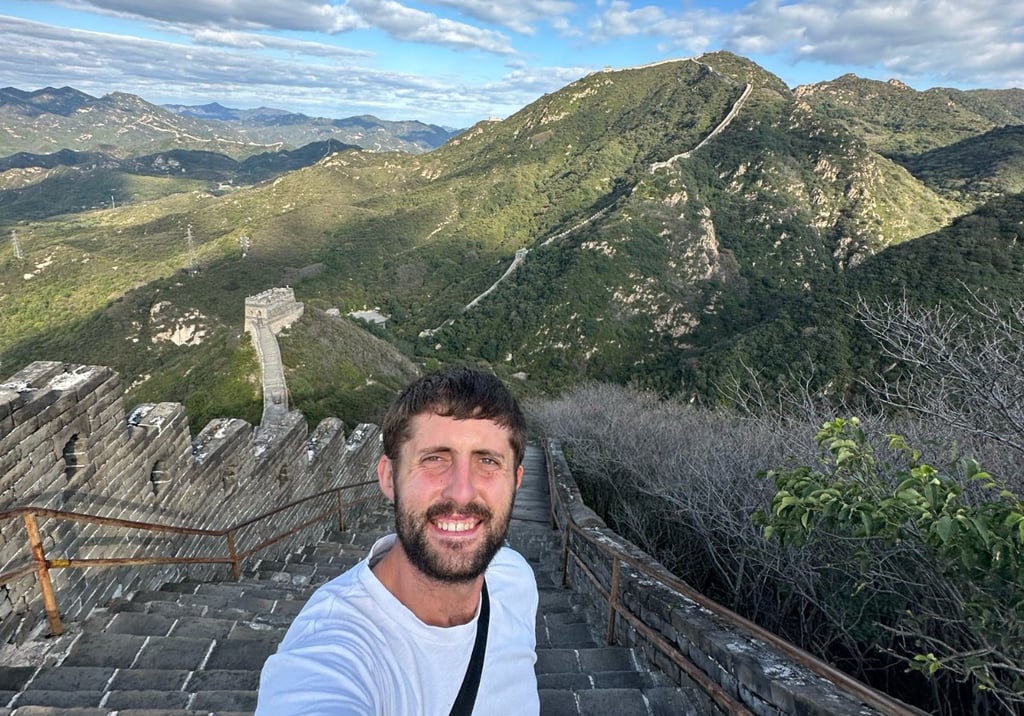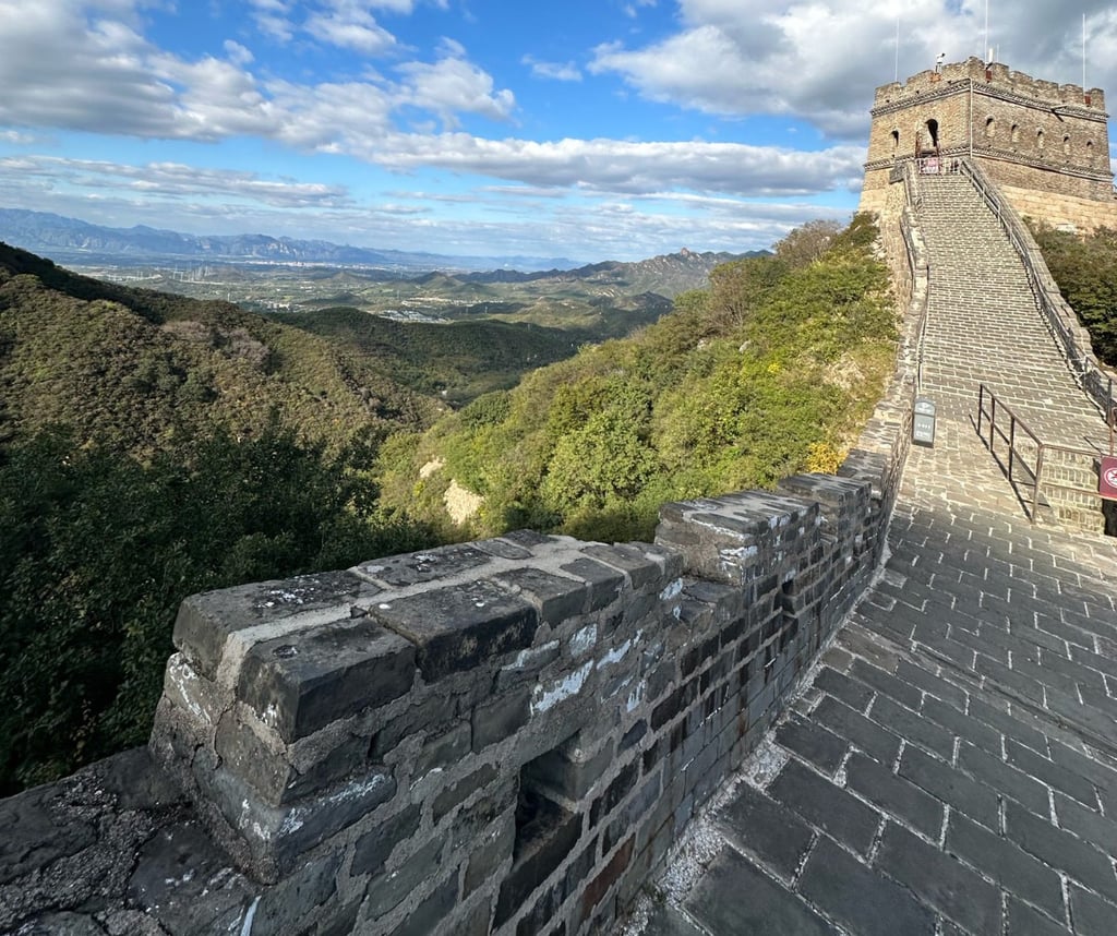 Once back at the hostel and everyone accounted for, we load into a bus, big backpacks left at the hostel, and head for the Great Wall. Our drive to the wall takes us past many of Beijings tourist and historical highlights such as the both the Bell and Drum Towers as well as the North City Wall Gate. Originally Beijing outer city had been surrounded by nine different gates as grand entrances however, these days the North City Wall Gate is the only one still standing and with most of the wall around it gone. It is a tourist attraction more than a gate these days but, nonetheless, still impressive. We also stop for our first meal as a full group together, we order a wide array of different things including safe bets like dumplings, sweet and sour pork and a local dish black bean noodles you mix the sauce into yourself. Ricardo is a chef back in Mexico so is inclined to be a bit more risky with his order, he gets a local speciality organ soup, which includes intestines, tongue, lung and liver in its broth. I try some of it and have to say it was not pleasant; the texture of tongue is not for me. Inspired by Ricardo’s bravery Tom and I order deep fried intestine with garlic butter which was actually rather nice. The intestine was sliced so thinly in its deep fried batter it may has well been deep fried bread and with the garlic butter it was almost like eating garlic bread.