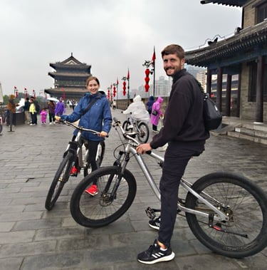 Erika and I rode from the East Gate all the way round to the South, Sophia did offer to tandem with Tom but he wasn’t confident he would even be able to balance on a tandem bike so decided to walk to the South Gate in the opposite direction. We would have cycled the whole wall but due to a crack in the South Gate everyone is required to get off their bikes there and, as the weather had taken a turn for the worst, Sophia suggested we called it there.