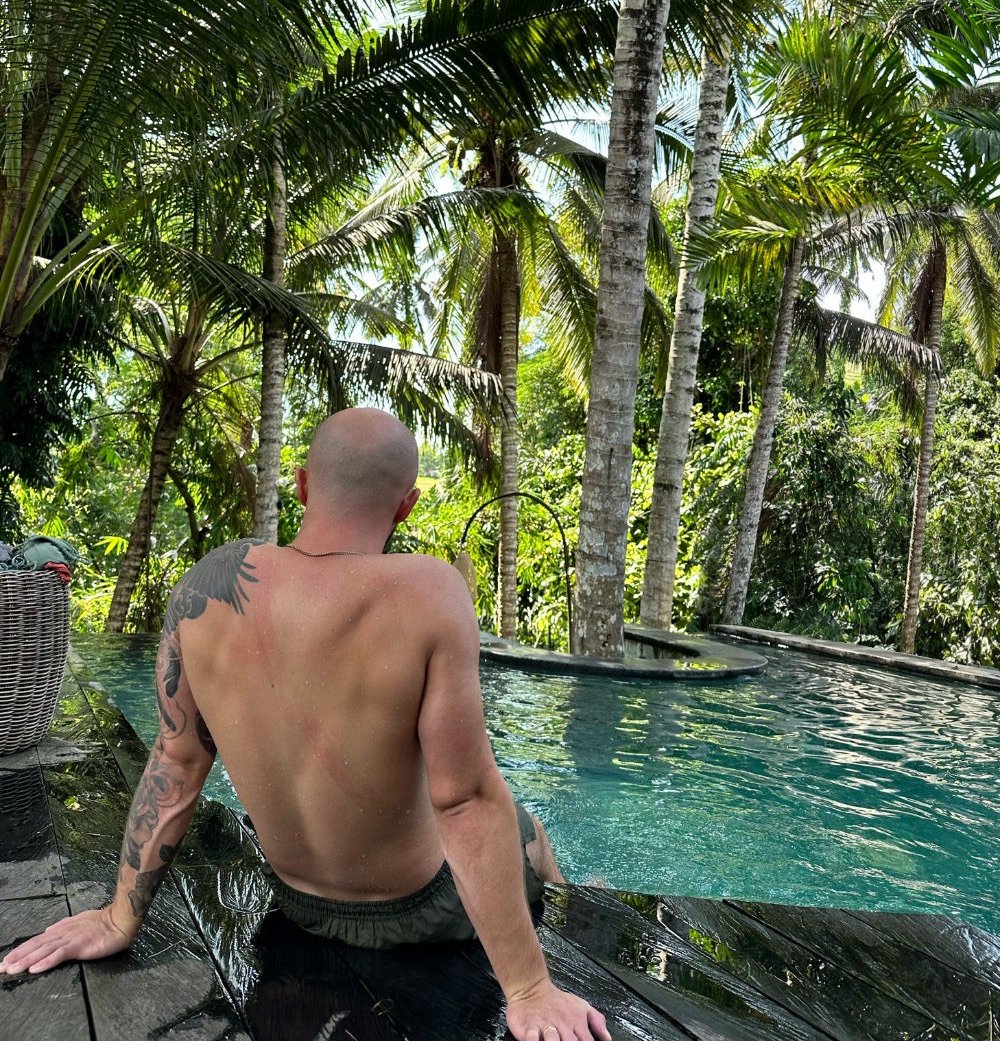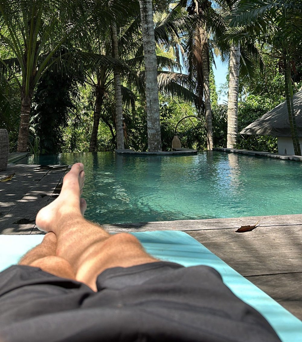 Relaxing by the pool with Jon