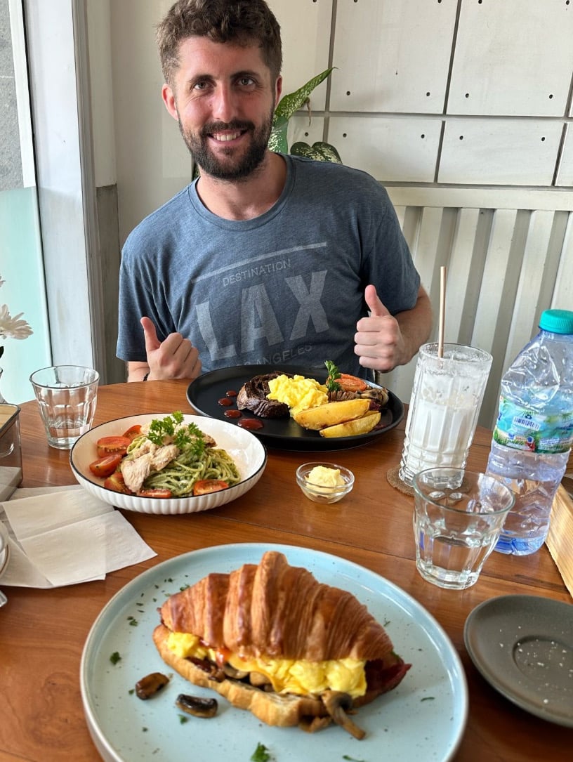 The next day I treat myself to a bit of a lie in waking up at ten. Of course this still gives me an hour or two to lounge around the pool and wait for the others to get up. It is our last day in Ubud before heading to Gili T (Gili Trawangan) island for Christmas, so we decide to take it easy. Jon and I once again leave a sleeping Scott to get a light lunch before picking up my shoes and heading back to the hostel to chill. We play some more chess; my record this time is winning one out of one game against Scott, and three out of four games against Jon. After a nice chess and lounging by the pool day, we decide to order in some food on Grab and have a movie night. I tuck into a delicious burrito while we watch the movie Enemy at the Gate. It is a good movie although with the current Ukraine Russia conflict, it has not aged well. After the movie and our dinner we head to our room for an early night, excited for the next leg of our adventure, starting tomorrow.