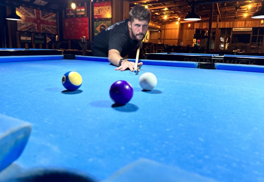 The next day I have a bit of a lie in, I chill by the pool with Jon for a bit before we head out to breakfast, we decide to let Scott sleep as he always seems to be knackered. It is a nice breakfast that I have with yet another banana milkshake. One of the many things Asia does better than the UK is milkshakes, they are available pretty much everywhere and I love a milkshake! After breakfast we head back to the hostel and Scott is still a sleep so Jon and I lounge about a bit and end up playing some chess. I get lucky and beat him twice! The rest of the day is pretty chilled, we drop off some laundry to a local laundrette, hang by the pool and just chill out. That evening we head into town. We end up going to a place called The Melting Pot, a Texas style bar. We make friends with a fellow traveller and play a few games of pool with him. This is a cool bar with loads of pool tables, axe throwing and even a basketball machine. I order myself a gumbo – something I haven’t eaten since being in New Orleans for St Paddy’s day with Alex during my year abroad at university – it is lovely. A few games of pool and a couple beers later we decide it is time to head back. We have booked the popular sunrise hike to Mount Batur, the local active volcano located at the centre of two concentric calderas northwest of Mount Agung. This means we need to leave at 2am tomorrow morning, so any early night is needed.