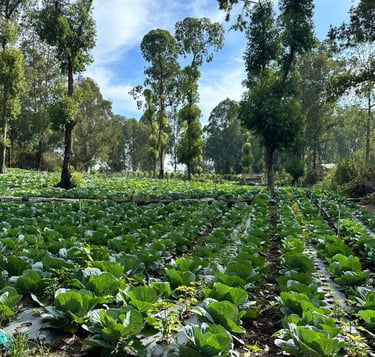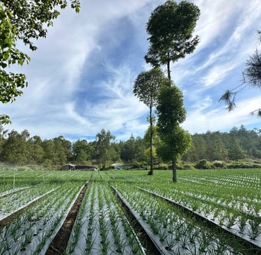 Lush crops grow well on the fertile land