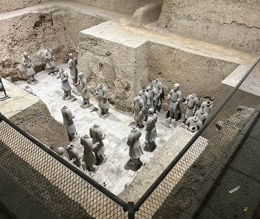 The site was re-discovered in 1974 by five brother digging a well for their farm, the land above the site having been farmed and cultivated for years. The farmers originally finding just heads, hands and other parts of the broken statues, thought they where some kind of demonic warning and fled their farm. It was only after discussing with a local historian who was less inclined to superstition did they return. When the historian took these artefacts to national museums and universities they didn’t realise their significance and foolishly dismissed the farmers and historian. Finally when a curious historian decided to carbon date the pieces, it was realised how old they were and their worth realised. Since then many local farmers have been paid by the government to move, as the archaeological dig site keeps expanding and the true size of the tombs are realised. The full extent of the site is still being discovered but it takes up kilometres and kilometres of land, the burial site itself is said to be surrounded by roughly 100 different pits filled with various artefacts. The four biggest of which are the ones with the warriors that I visited today.