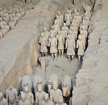 The third pit, although smaller than the first pit, is still an impressive size filled with archers, war chariots and cavalry, and a small number of infantry. Smaller sets of units that were often held back or on the flanks by ancient armies to help execute quick manoeuvres, to react to changing conditions during a battle and, if successfully utilised, could make the difference between success or defeat. The final pit is the smallest but could be argued to be the most important. It is filled with a small number of generals and high ranking officers and a singular war chariot. Unlike the other pits where the armies all face the same way with the exception of a few on the flank, all the statues in this pit face each other. This combined with their high ranking status has earned this pit the name Command Centre; thought to be the war room, the area where the decisions would be made by those high enough in rank to make them. In this pit the statues, although still of different individuals, have much more similarity than those in the general army. All high ranking officials unsurprisingly tend to take on the tall, thinner and skinnier facial features that where associated with the emperor’s original area of South China; showing that although a united country, there remained regional bias and inequality maybe.